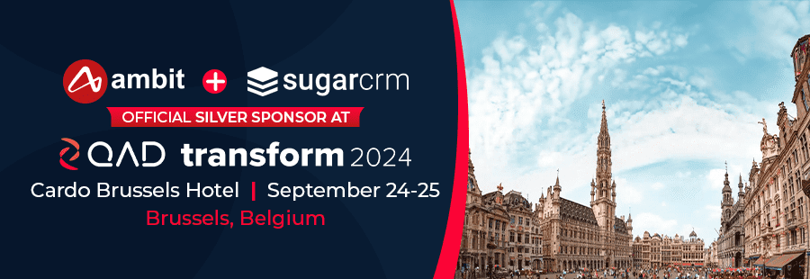 In this dynamic event, Ambit Software proudly participates as a silver sponsor, showcasing our commitment to transforming manufacturing and supply chain operations. Discover SugarCRM’s sales-i integration, offering next-generation customer relationship management, powerful sales integration capabilities, and field service management—all seamlessly integrated with QAD. This integration centralizes access to comprehensive sales analytics across every customer, sales team, branch, and product instantly, benefiting industries like manufacturing and logistics with extensive product catalogs and diverse product groups. Engage with Ambit Software and industry leaders as we collaboratively explore the future of manufacturing and supply chain transformation.