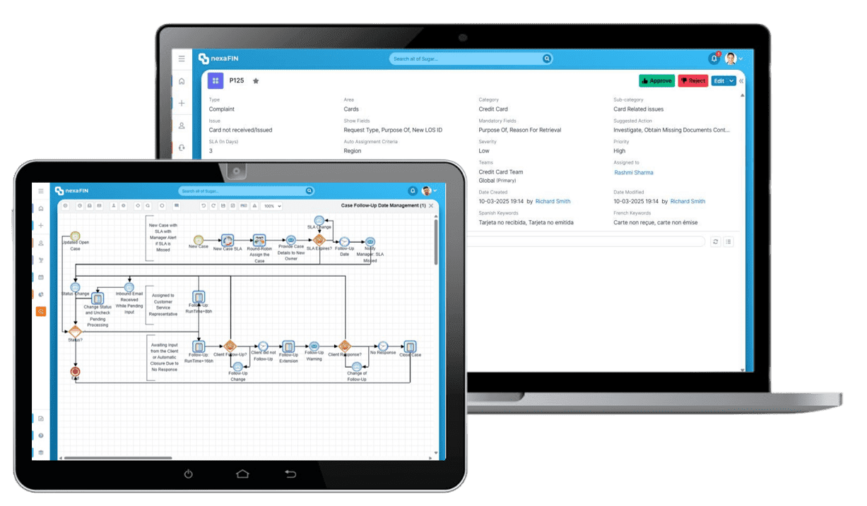 Contemporary banking is based on an integrated network of financial infrastructures and digital platforms. nexaFIN, developed on SugarCRM, integrates in a seamless fashion with core banking platforms, loan management systems, underwriting engines, KYC/AML compliance solutions, credit card management, BI & analytics software, and others. By integrating with account opening systems, document management, claims processing, and mobile banking solutions, nexaFIN provides an integrated customer view, workflows, and automated compliance monitoring. This broad integration ability enables banks to maximize operational efficiency, enhance risk management, and provide enhanced customer experiences at the same time while being fully regulatory compliant.