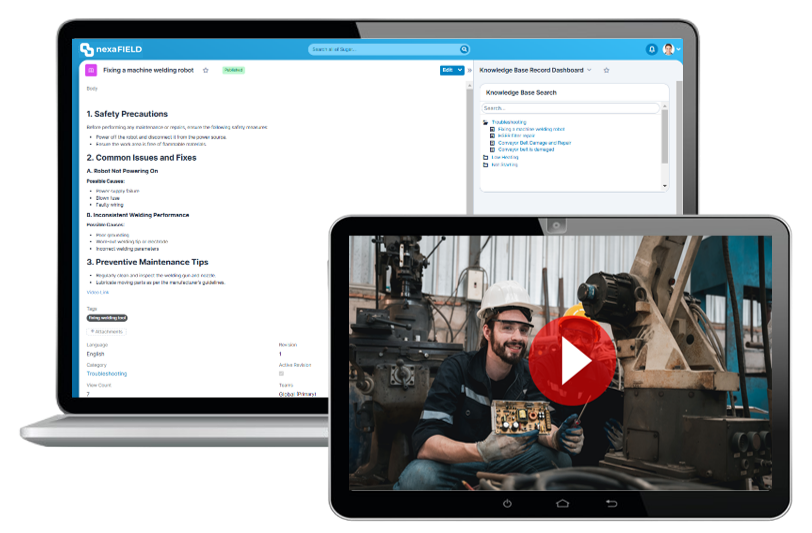 Businesses can standardize their service procedures, leading to improved consistency and quality. A collaborative environment for knowledge sharing enhances technician training and onboarding. By offering instant access to expert knowledge, nexaFIELD boosts first-time fix rates and overall efficiency.