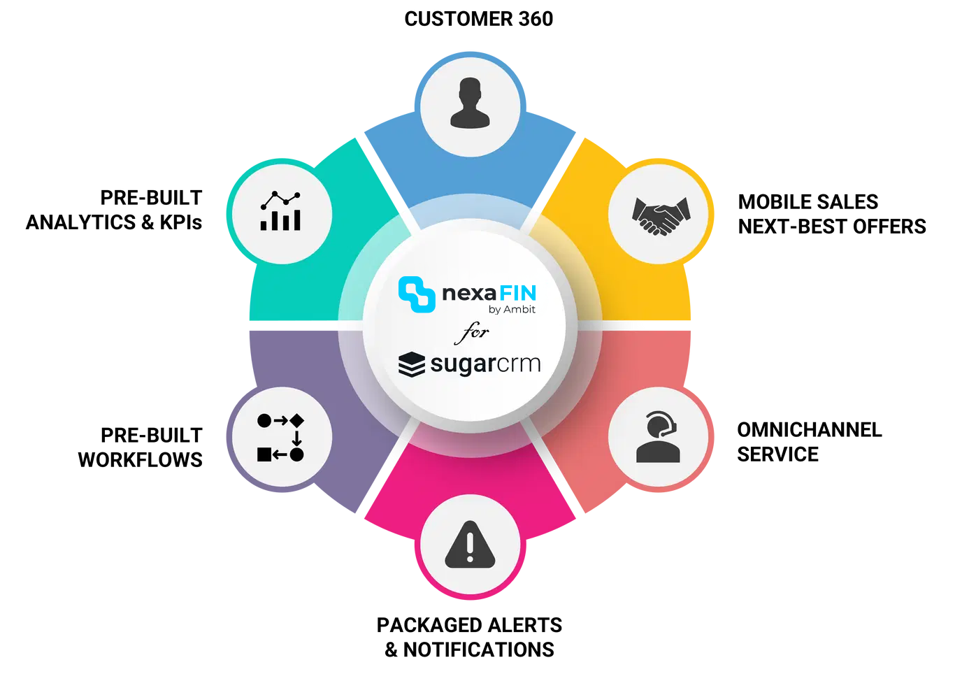 nexaFIN for SugarCRM is tailored to meet the needs of modern financial institutions, delivering an all-in-one solution for efficient, customer-centric service and sales operations. By leveraging this accelerator, banks can: