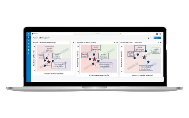 With SAM (Strategic Account Management) plans, you can now measure BU relationship strength and the active players involved. With a visible relationship chart, a quick look shows the current status of the account. You can also see how attractive a particular BU is to your business.