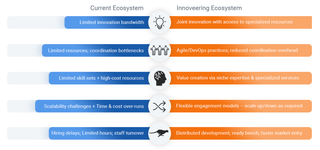 With the onset of web 3.0 and the pay-as-you-go model delivered through SaaS (Software as a Service), we are seeing a gradual shift from software engineering to product innovation. Product Engineering spans the entire product development life cycle; Ideation, Engineering, UX, Quality Engineering, deployment on Cloud and Mobile, and Product Maintenance.